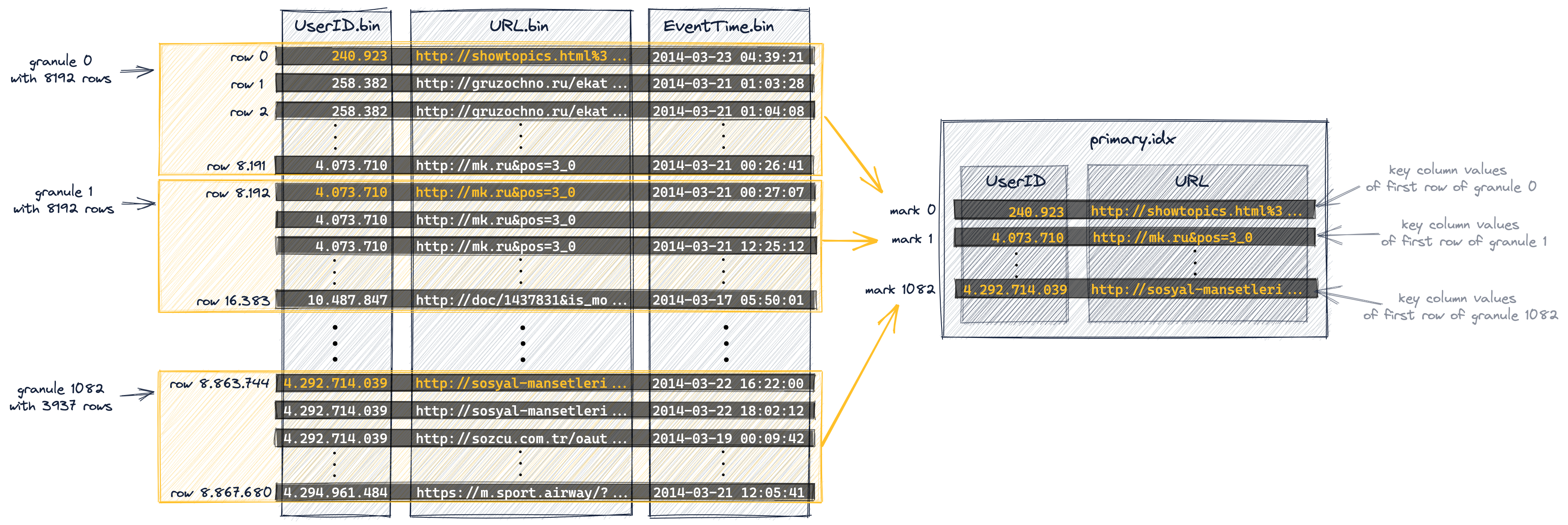 - ClickHouse是怎样构建和使用主键稀疏索引的