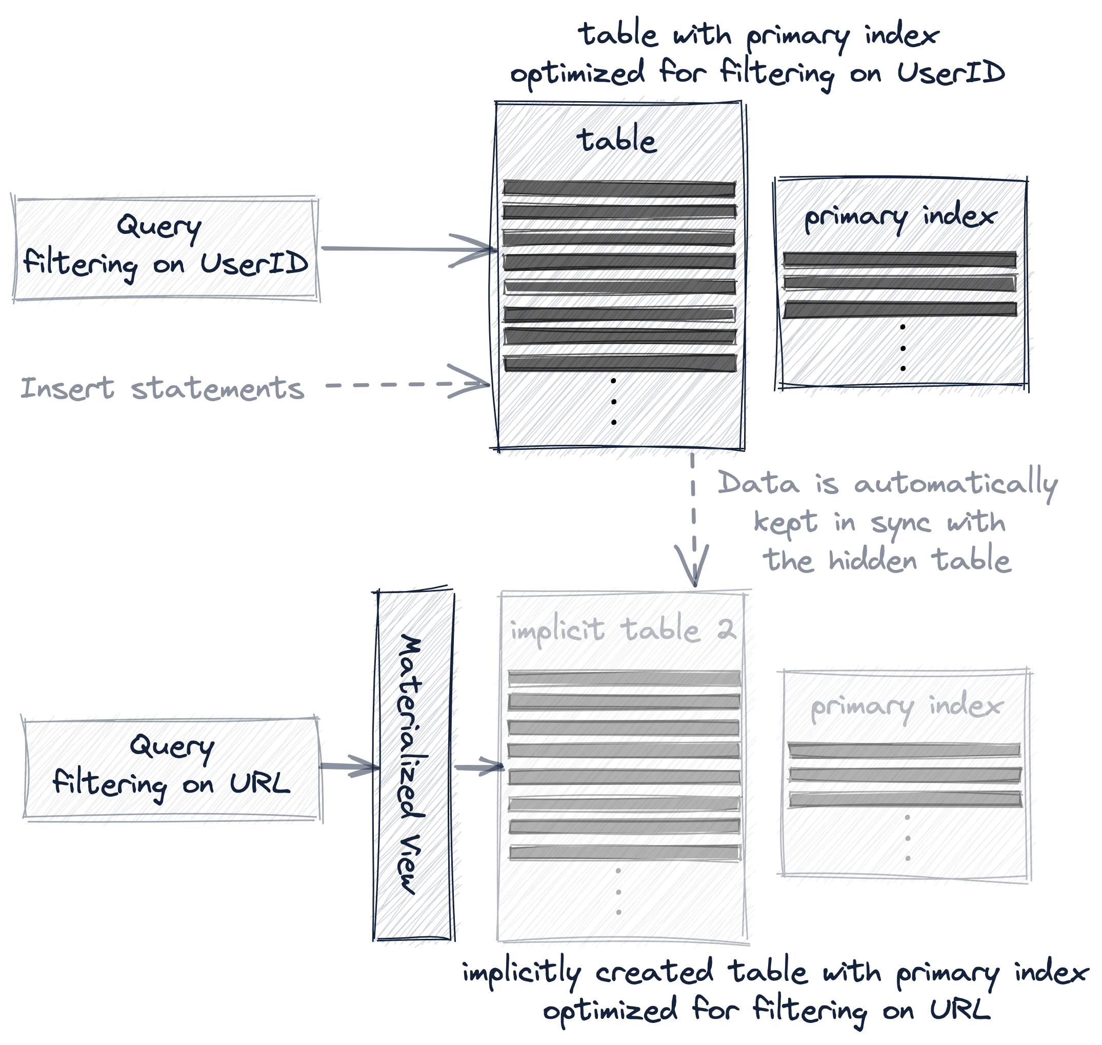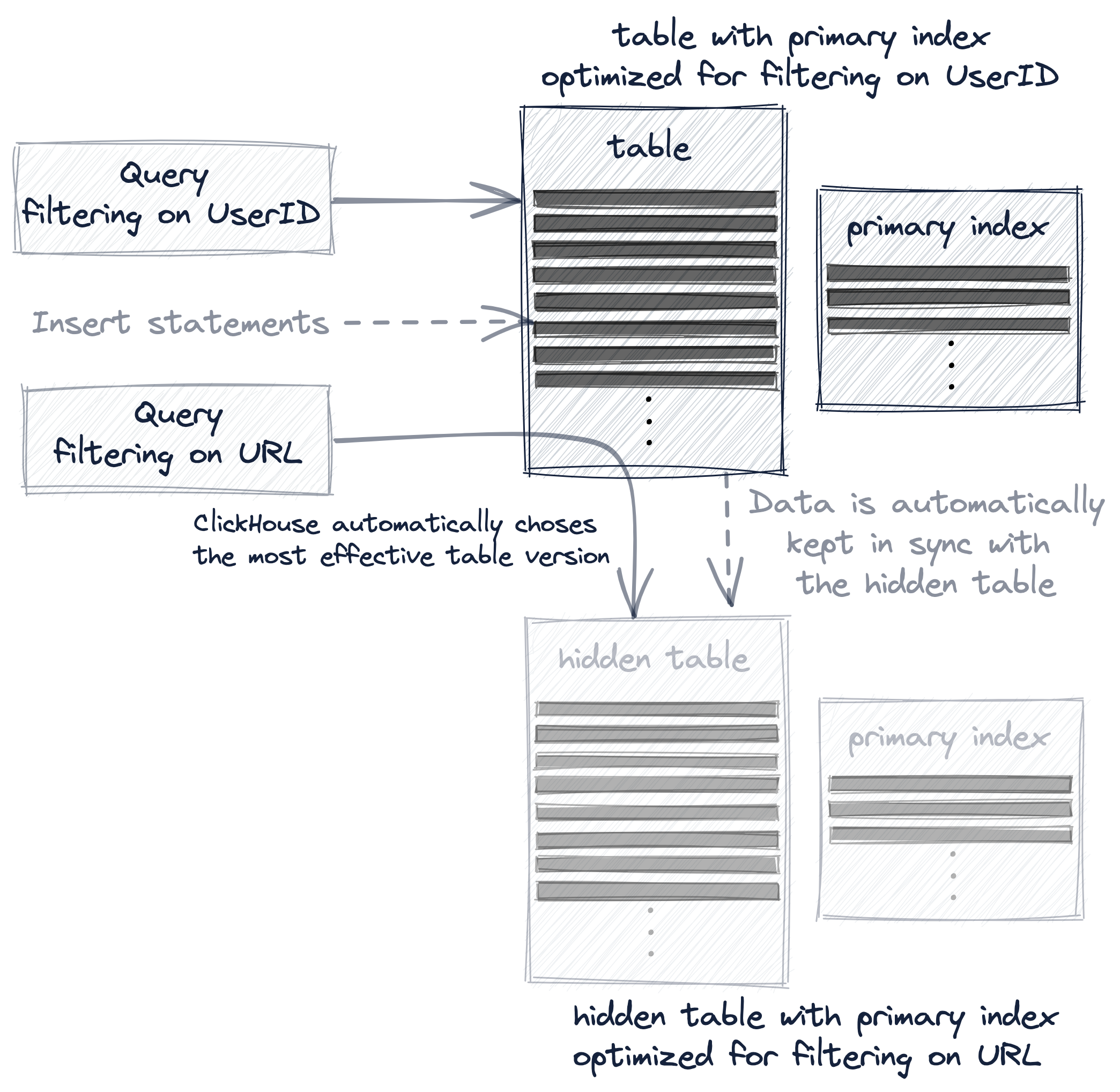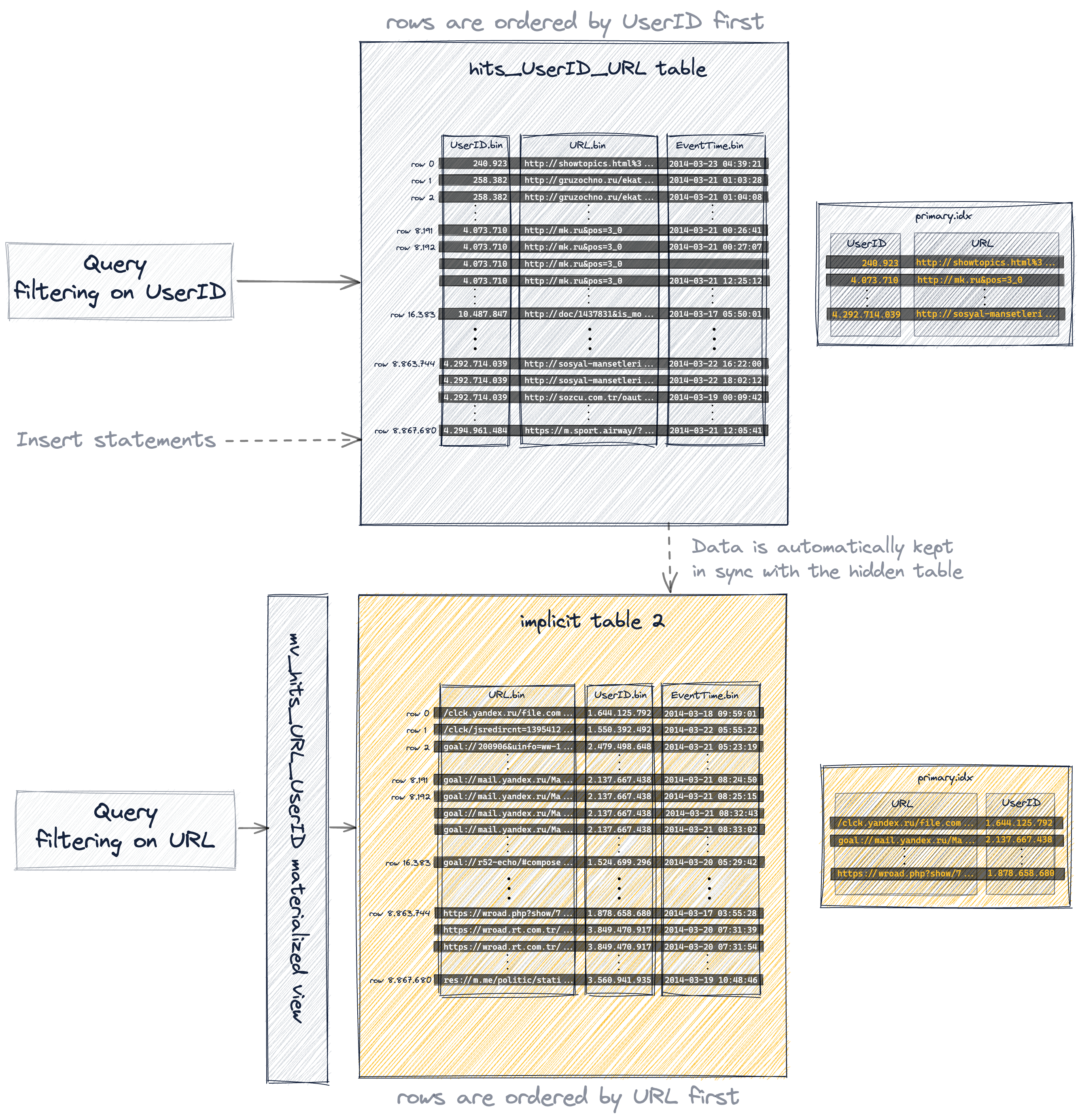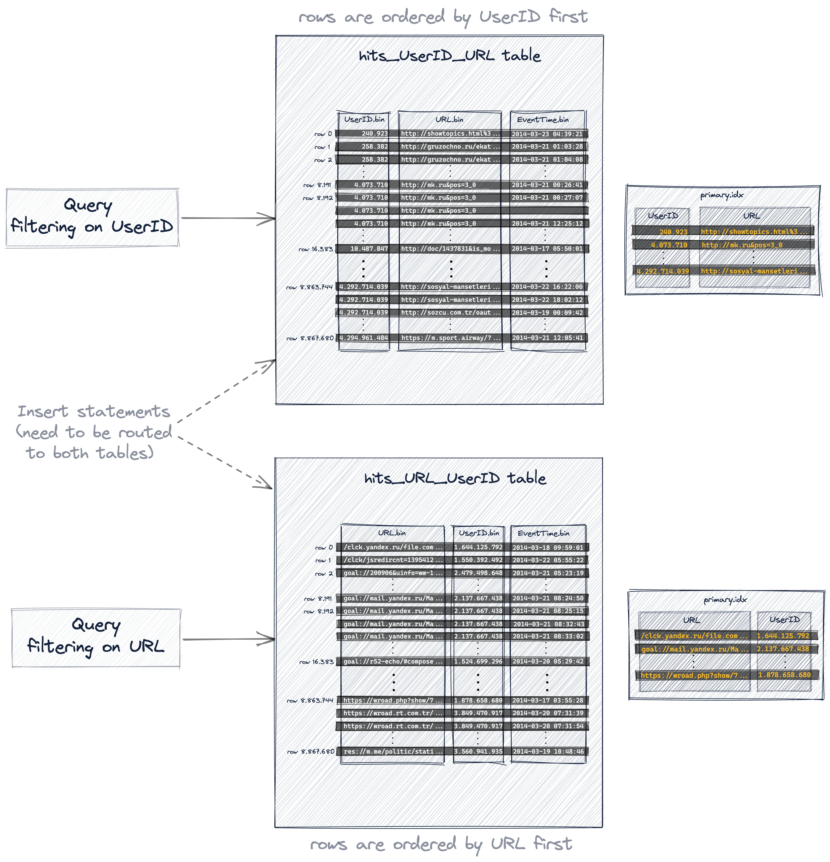 (IsRobot, UserID, URL)创建表hits_IsRobot_UserID_URL,其中的键列按基数升序排列